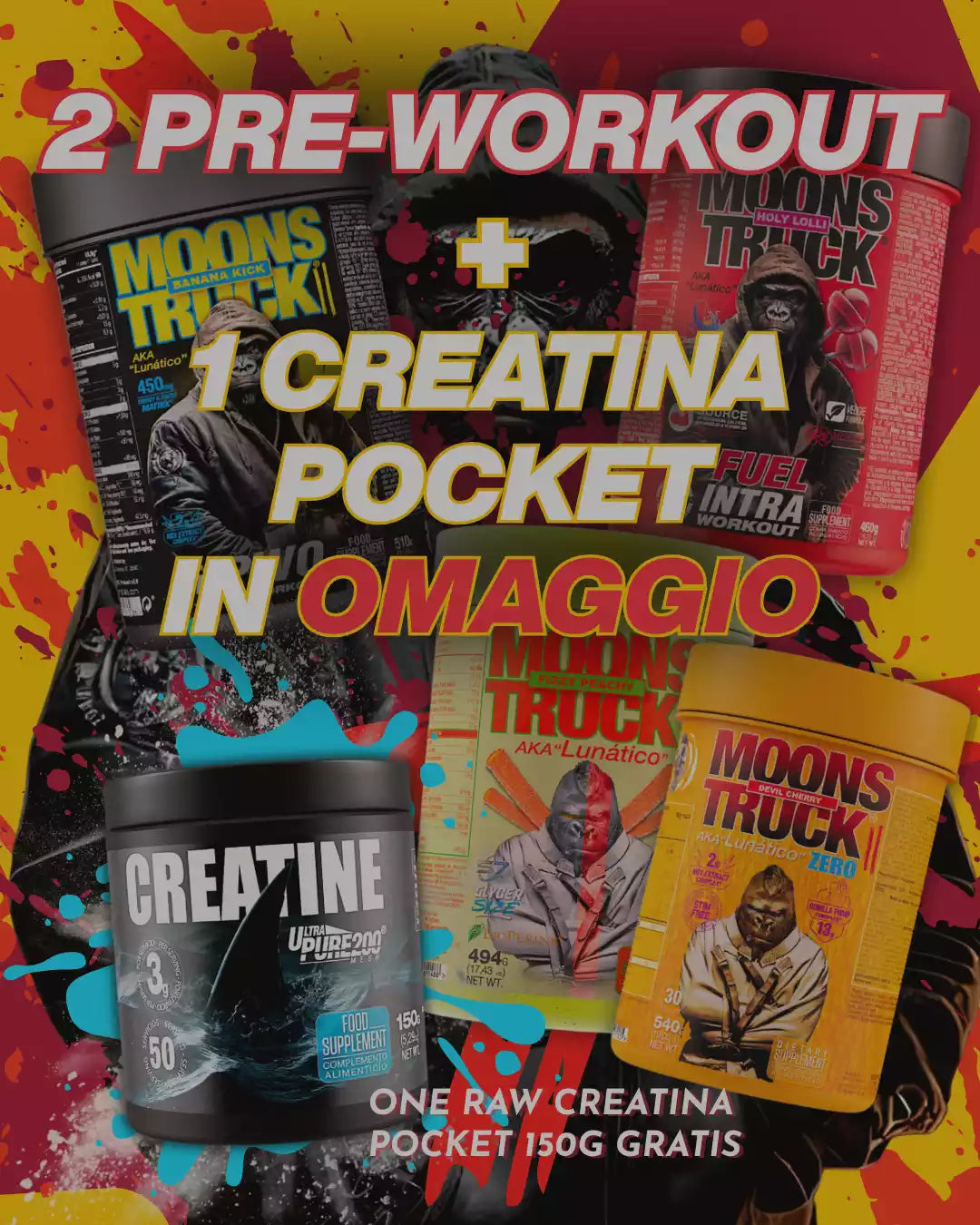 Acquista 2 pre-workout e ottieni in omaggio 1 creatina pocket da 150g. Energia e pura potenza per spingere al massimo ogni allenamento.